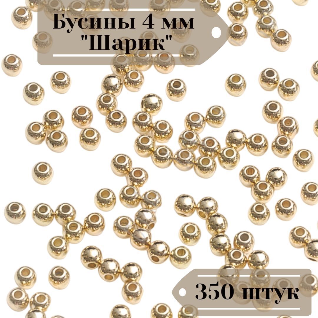 Бусины 4 мм "Шарик" золотистый 350 штук
