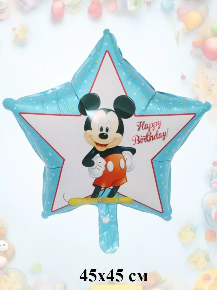 Второй шар представлен в виде звезды, размером 45х45 см, и точно так же, как и его спутник, украшен изображениями вечно молодого и веселого Микки Мауса. Фольгированная поверхность шара не только придает ему неповторимый блеск и яркость, но и обеспечивает дополнительную прочность, позволяя шару дольше сохранять форму и объем.